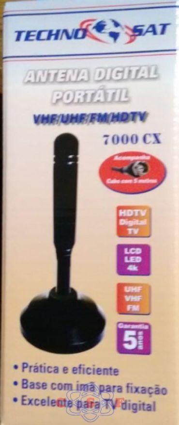 Antena Interna Digital Tecno Sat HDTV 2-8DB Base com imã cabo 5 metrosSuper Recepção TV Digital - HDTV Digital - Antena Interna
