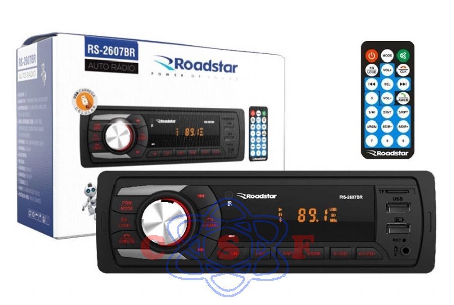 Auto Radio Roadstar 2607 BR Mp3 Fm Usb Sd Bt com Bluetooth 4 Canais 25 Watts com Saidas 2 Usb Pen e Carregador celularDescrição do Produto