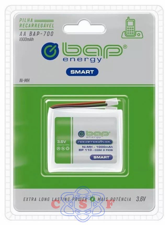Bateria Recarregável para Telefone sem fio BAP T110 3,6V 600mAh AA Marca: BAP Código de barras: 6942449542199