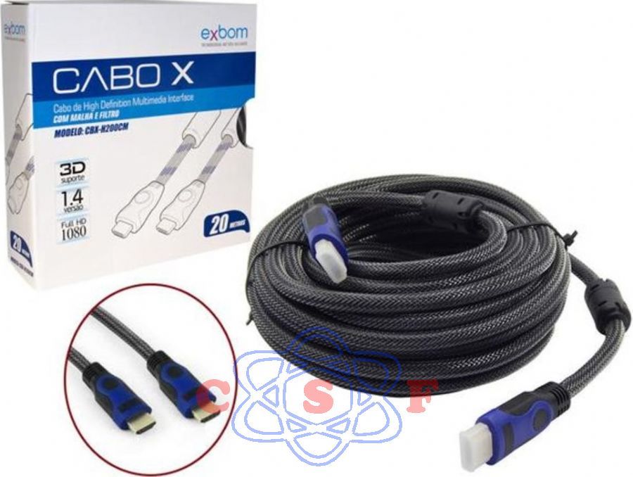 Cabo Hdmi Exbom 20mts Versão 1,4 4K HD 3D com Filtro |