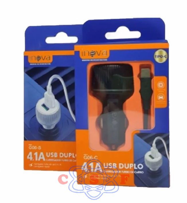 Carregador Veicular InovaTurbo G-06-C 4,1 Amperes Saida USB + Cabo Tipo C |