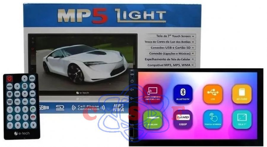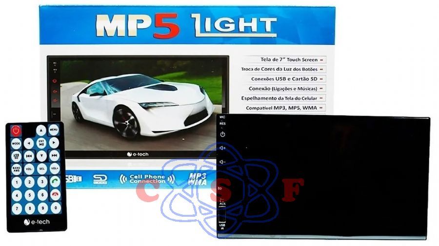 Central Multimídia Mp5 Ligth 7" Polegada E-tech FM USB SD Card AUX Bluetooth Espelhamento de Tela 200W Full Marca: E-tech Código de barras: 7898622141491