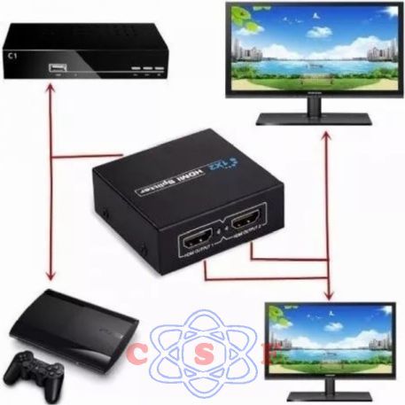 Divisor HDMI permite a conexão de dispositivos comodecodificadores, reprodutores DVD, reprodutores D-VHS e outros dispositivos HDTV com saída HDMI para dois displays de vídeo com entrada HDMI. Reproduza o sinal de um videogame em duas TVs ao mesmo tempo. Seja na empresa, no comércio ou em casa, tenha um produto de qualidade e com a garantia