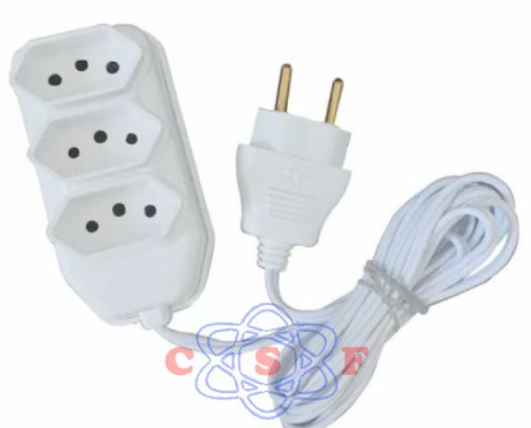 Extensão Lig Plus 3 Tomadas com 2+1 pino Terra 3 Metros Cordão Paralelo Branco 2x0,75 10A 2 Pinos Entrada |