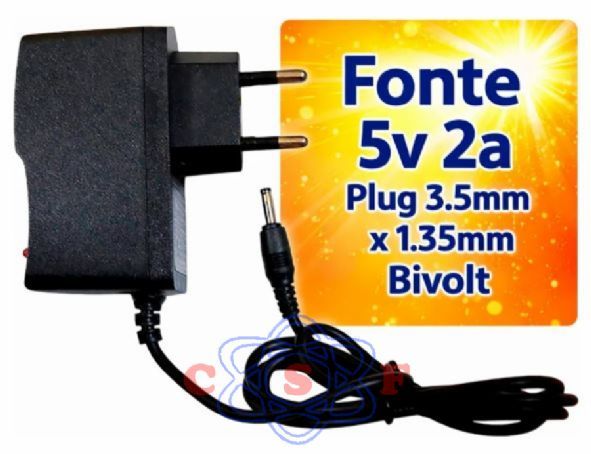 Fonte Netbit 5Volts 2,3 Amperes Plug 3,5mm X 1.35mm Bivolt Conversor etc. Plug Medio (+) Marca: OEM